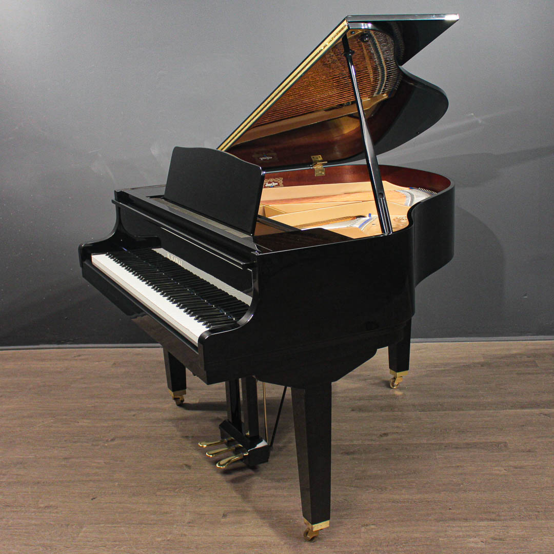 At 5'7" (170cm) in length, this piano's rich tone and responsive action is found not only in a great many homes, but in many schools of music and conservatories as well. Called the "Medium" grand, there is nothing medium about the sound from this instrument.