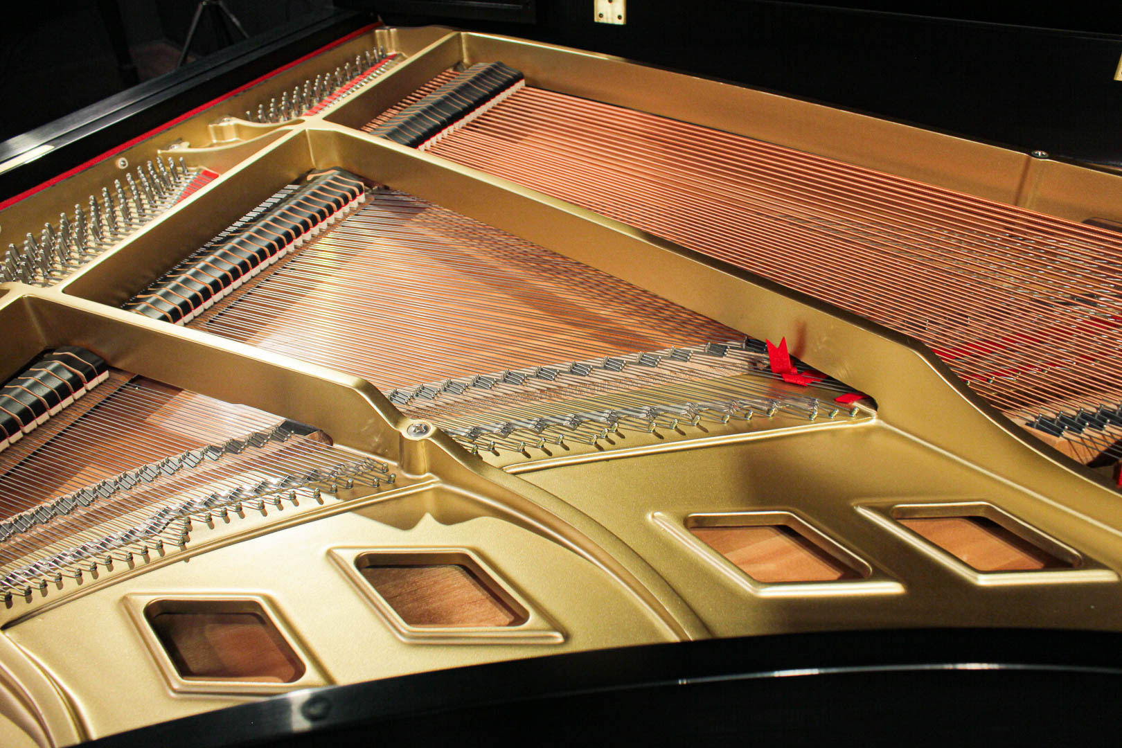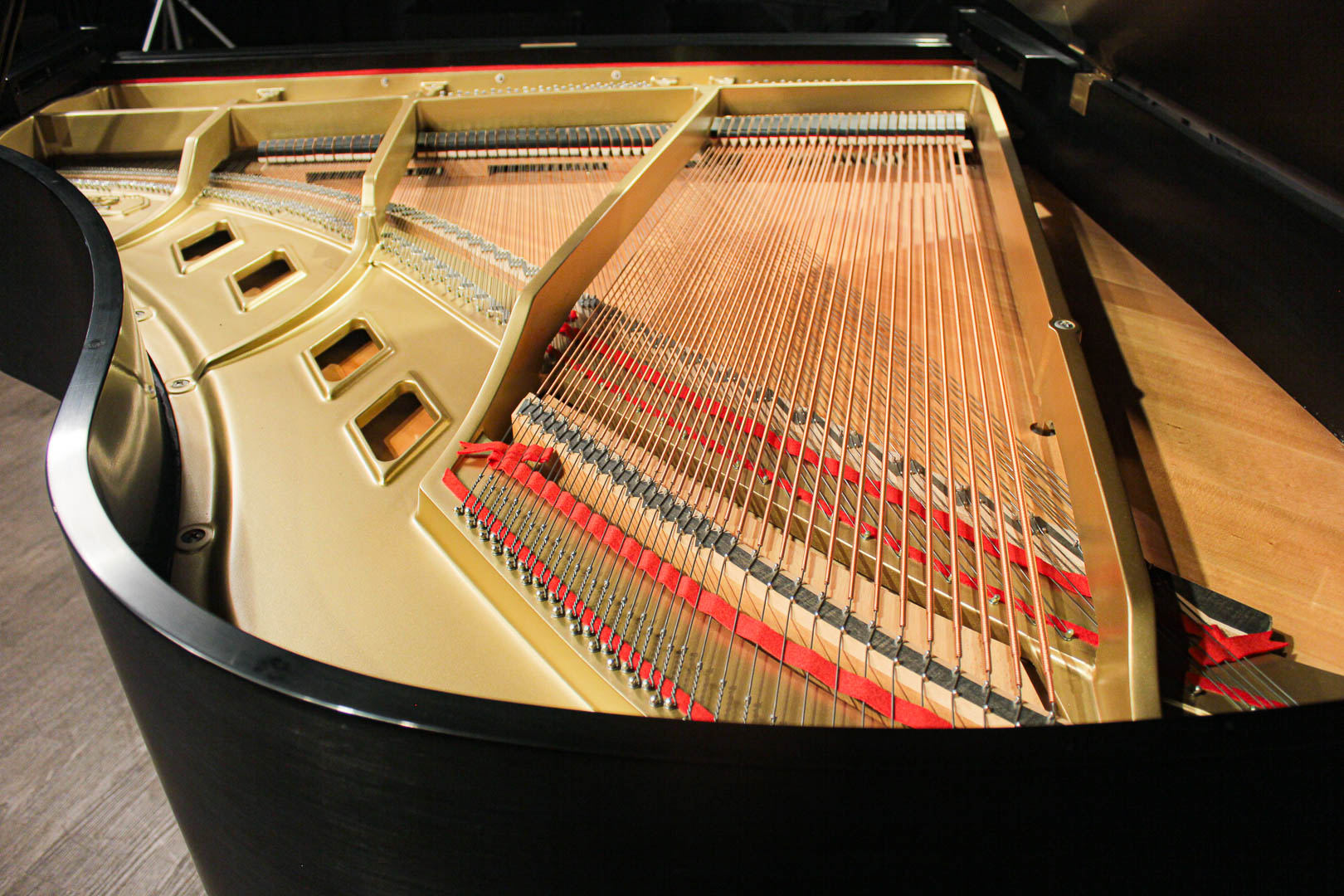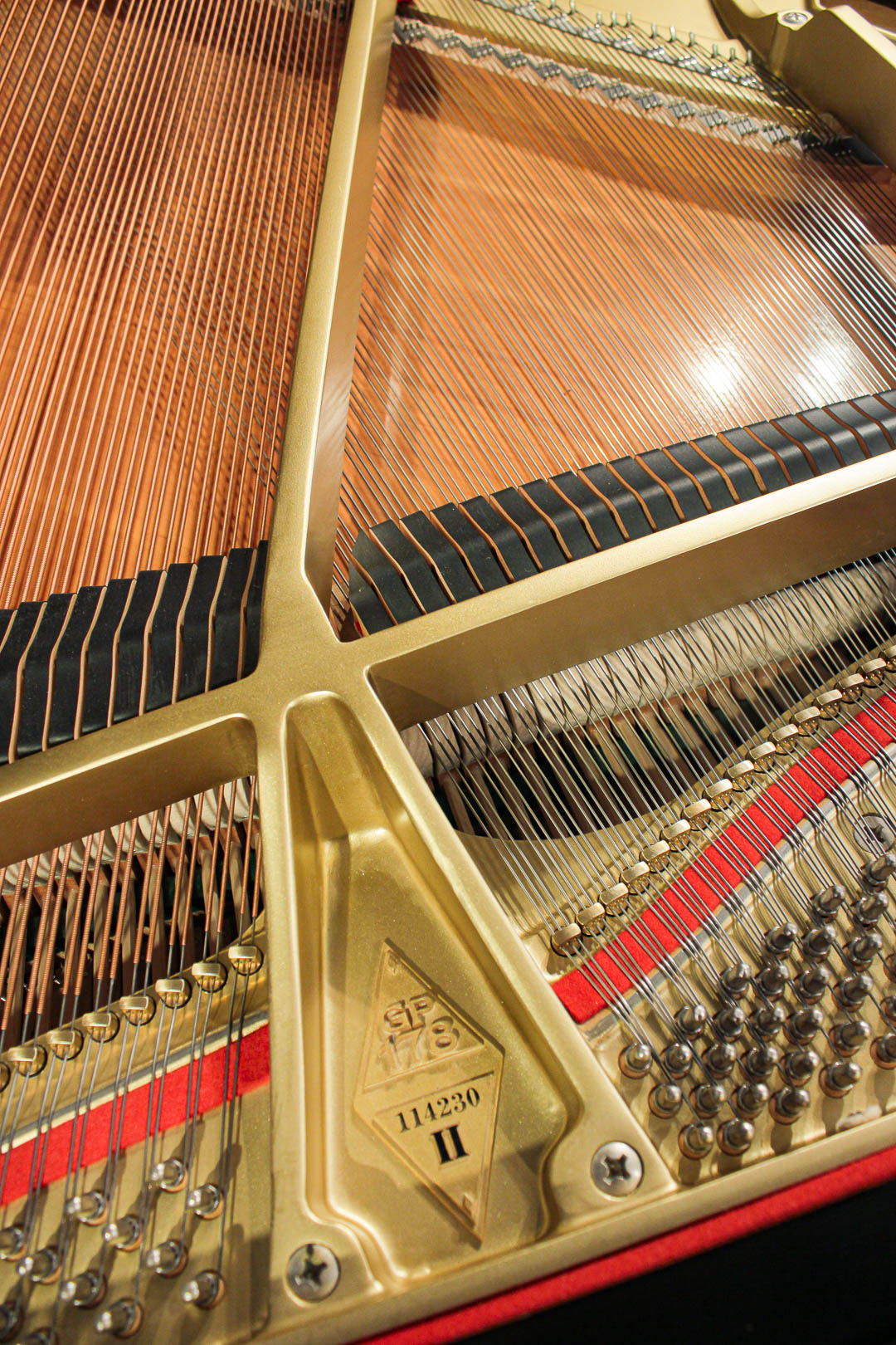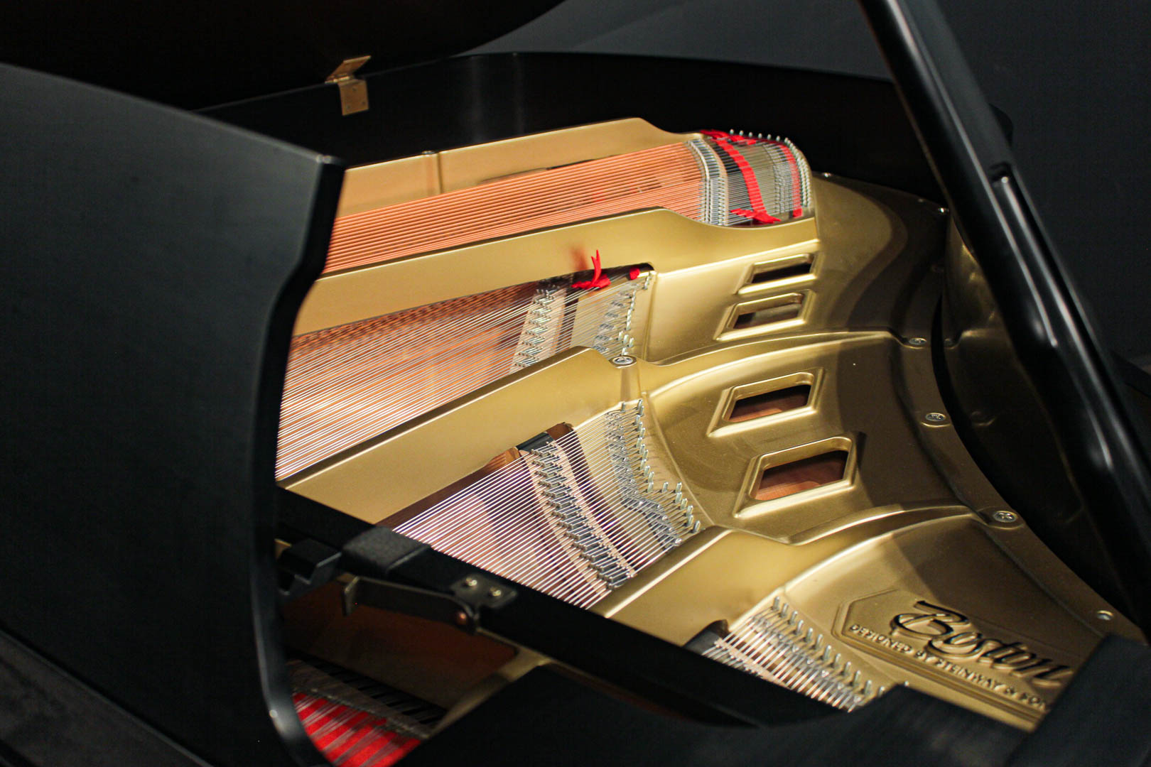 In comparison to other pianos, the Boston has less string tension. This reduced string tension allows for a larger, tapered soundboard, creating longer sustain, and more singing quality in the tone (as well as longer piano life). A wealth of other engineering enhancements, including optimal placement of ribs, braces, and bridges, also contribute to the Boston’s superior tone and greater stability.