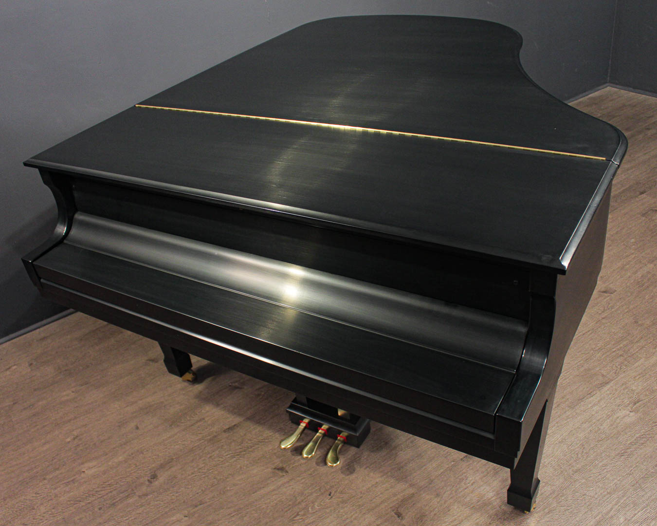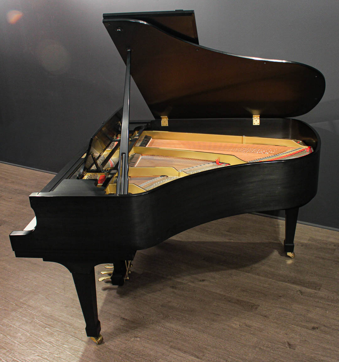 The Boston grand piano offers a larger soundboard in comparison to other pianos of the same length, due to its innovative “wide tail” design. This wider construction of the case means that a 5’ 10” Boston grand has the same soundboard area as a typical 6’ 2” grand piano, creating the power, richness, and feel of playing a much larger piano.