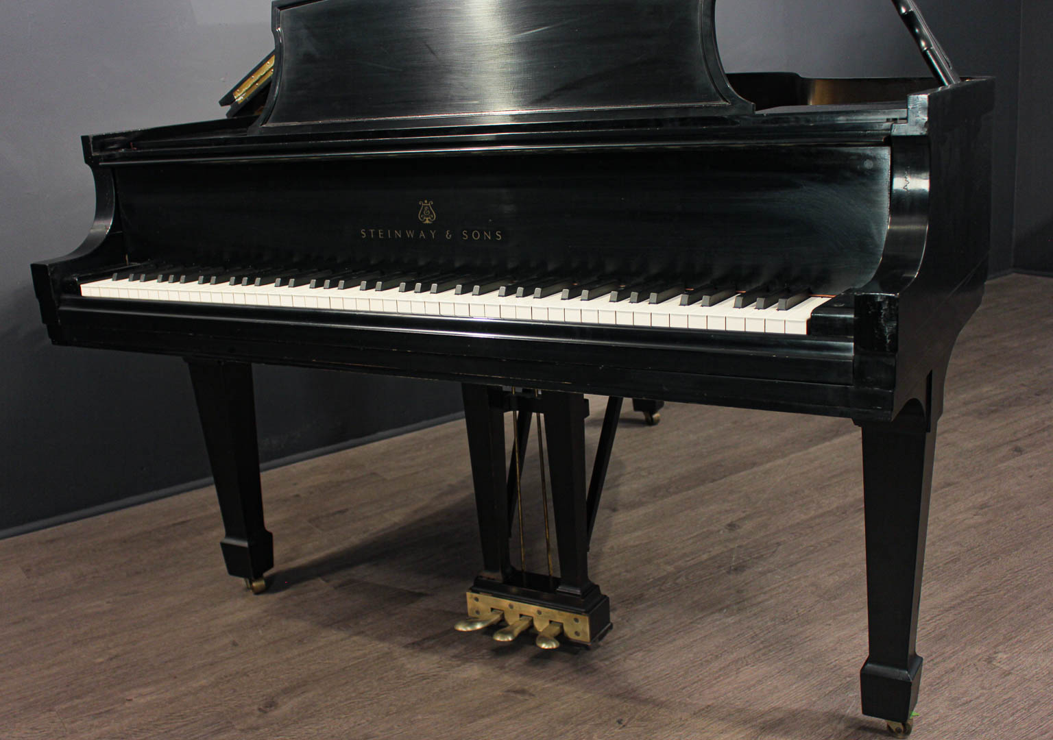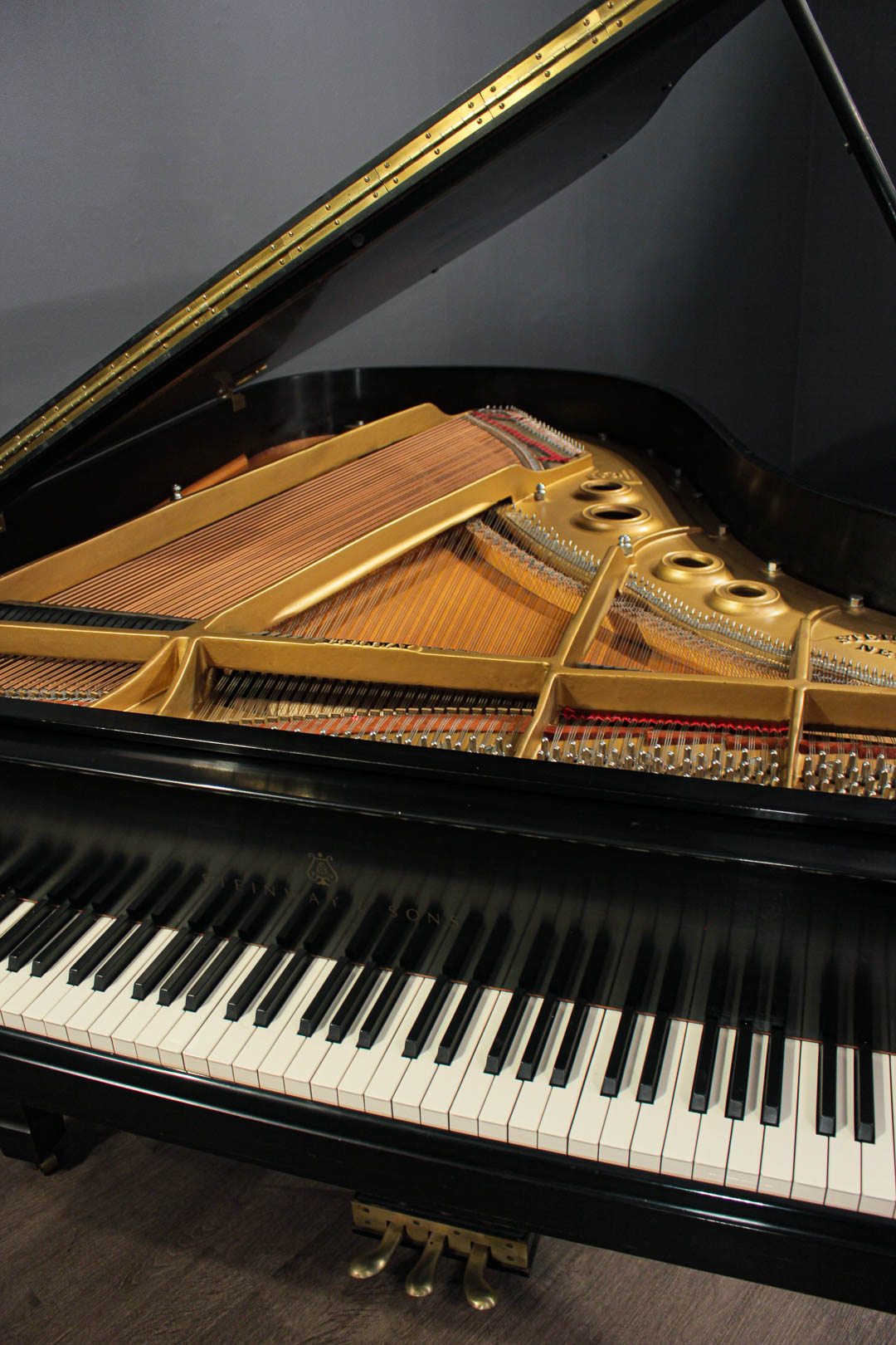 The smallest Steinway concert grand piano offering remarkable depth and resonance yet requires less space than full-sized grands.