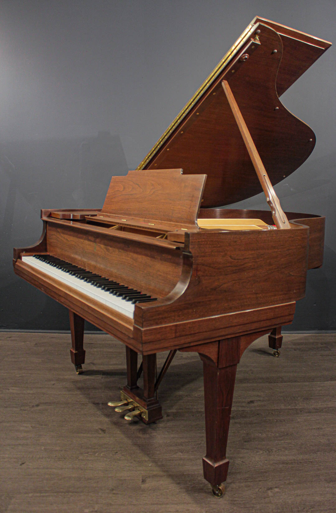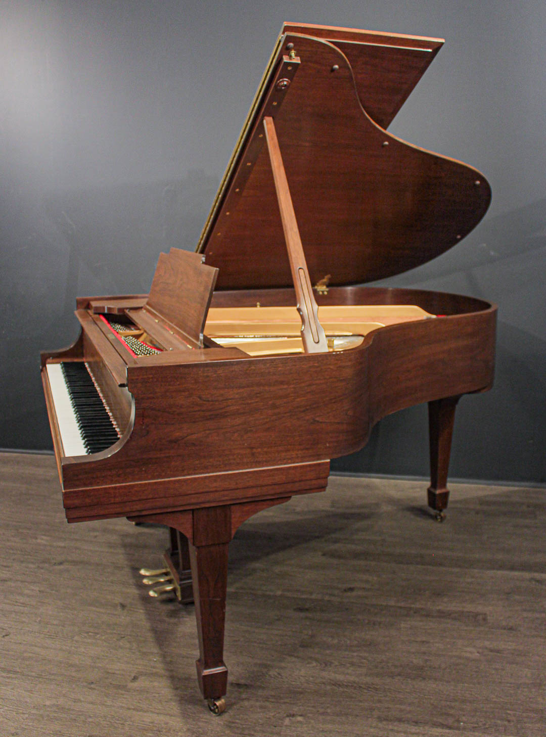 At 5'7'' (170cm) in length, this piano's rich tone and responsive action is found not only in a great many homes, but in many schools of music and conservatories as well. Called the "Medium" grand, there is nothing medium about the sound from this instrument.
