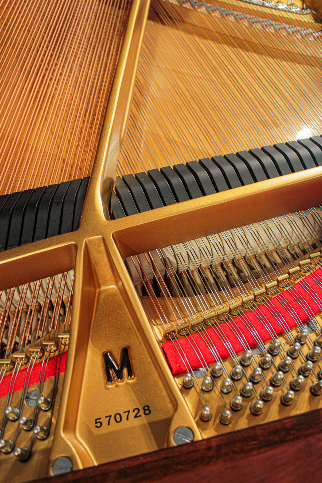 At 5'7" (170cm) in length, this piano's rich tone and responsive action is found not only in a great many homes, but in many schools of music and conservatories as well. Called the "Medium" grand, there is nothing medium about the sound from this instrument.