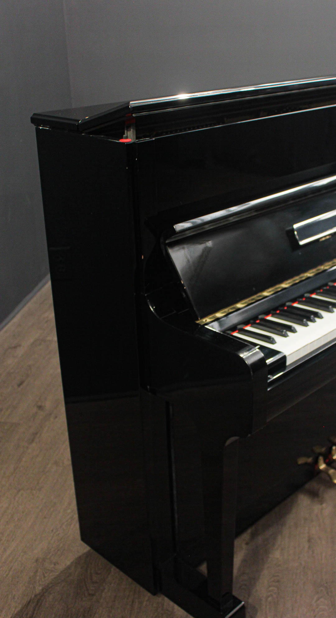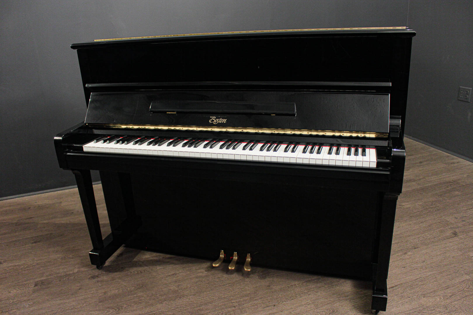 This Boston UP-118E 46'' upright piano, built in 1997, is an elegant home instrument. It's a great opportunity enjoy the benefits of Steinway's world-class piano design for a fraction of the cost of a comparable new piano. Lovely polished ebony cabinet.