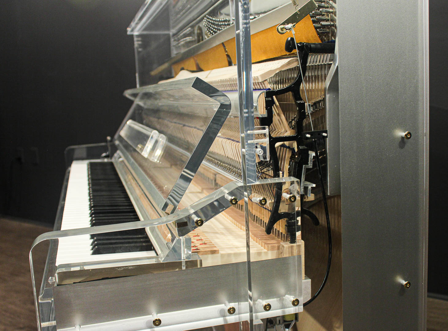 Beneath its transparent cabinet, the Luminos Upright is a fully functional acoustic piano—responsive, resonant, and built for those who value both sound and style. Each piano is precision-built with a full cast-iron plate, solid spruce soundboard, and responsive action for clarity and control. The transparent cabinet reveals every refined detail of its construction—an expression of both engineering and artistry.